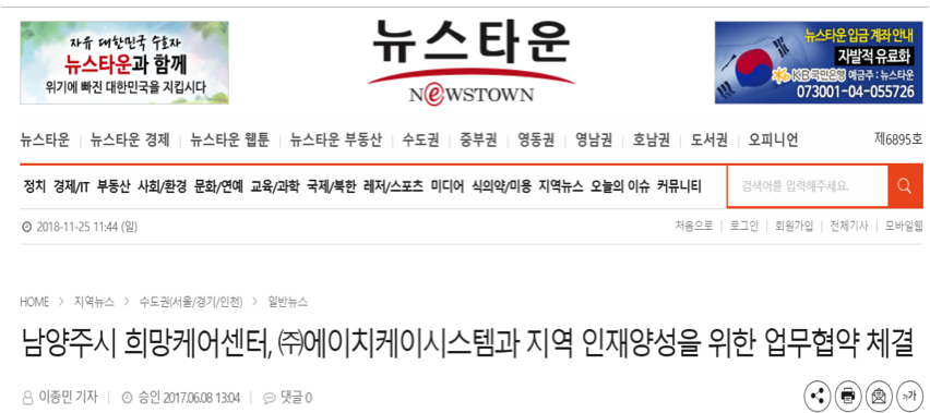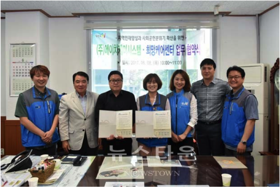 ㈜에이치케이시스템은 2017년 부터 남양주 희망케어센터와 업무협약으로 체결